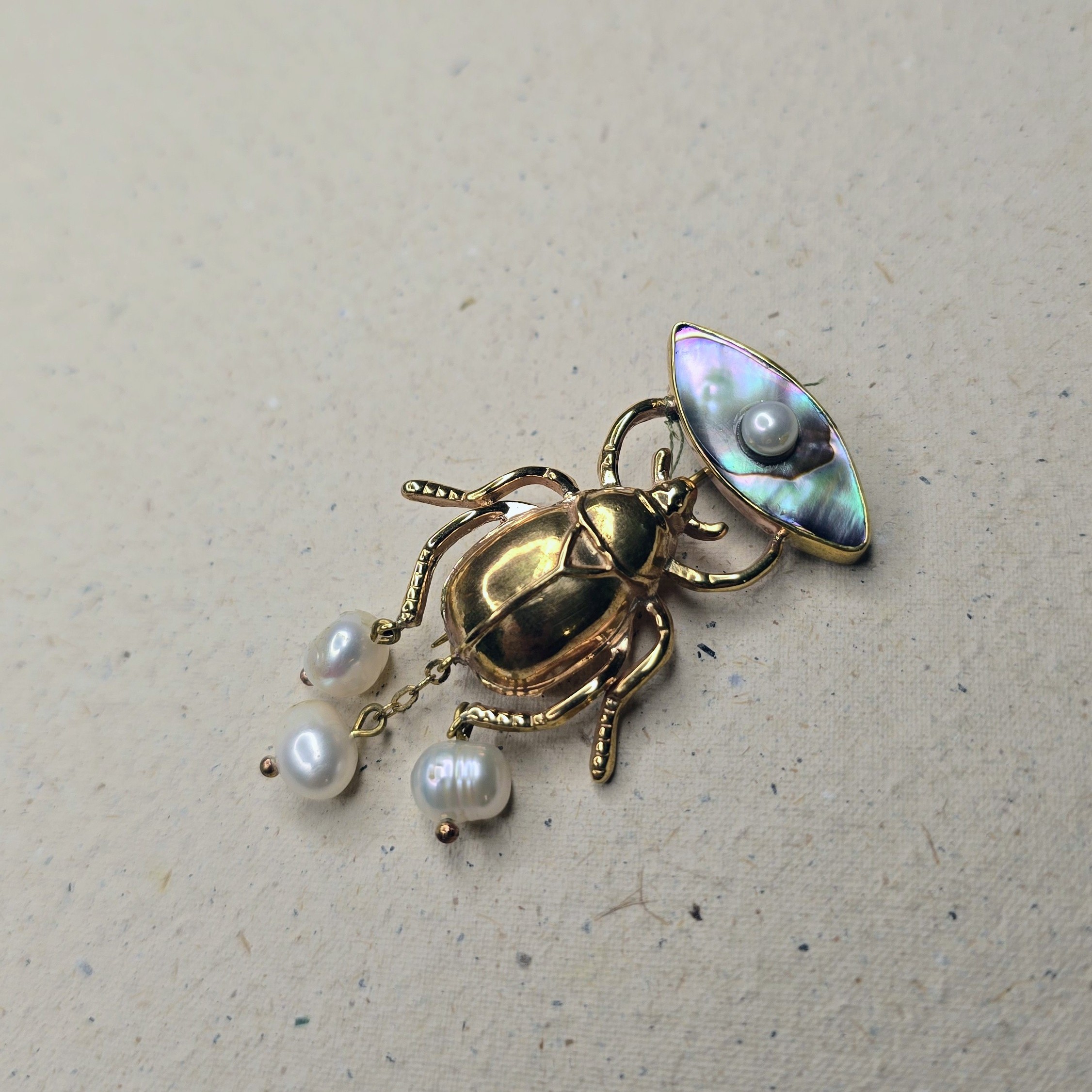 Broche artesanal feito em latão, com detalhes em pérolas naturais e abalone.Ideal para usar como acessório elegante e diferenciado.Pode ser usado como broche ou pingente em correntes, ampliando as formas de uso.
